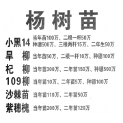 主营:杞柳、旱柳、大青杨、黑林5号、黑林58号、中黑防、农星1号、迎春5号、杨树