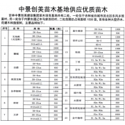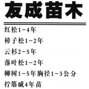 主营:樟子松、山丁子、苹果、海棠、李子、山楂、山梨、海棠、火炬、山杏、柳树、银中杨、水曲柳、梧桐、糖槭