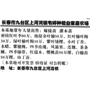 主营:富农一李子苗 黄桃苗 山丁子 山里红 山楂树 五角枫 山杏 山槐 水曲柳 糖槭 黄菠萝 红叶李 紫叶稠李 稠李子 云杉 丛生榆叶梅 丛生暴马丁香 丛生五角枫 丛生稠李子 紫玉簪