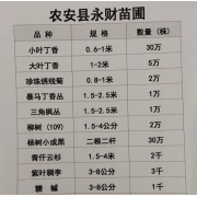 主营:国槐、白蜡、栾树、大叶女贞、银杏、柳树、法桐、泡桐、五角枫、丝棉木、杨树、楸树、榆树、椿树、合欢、红叶李、山杏、山桃、木槿、紫薇、河南桧、蜀桧、侧柏、油松、白皮松、华山松