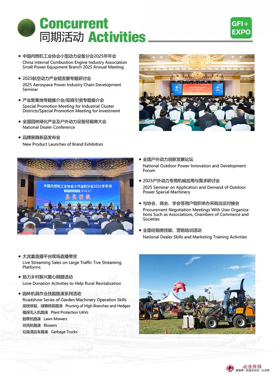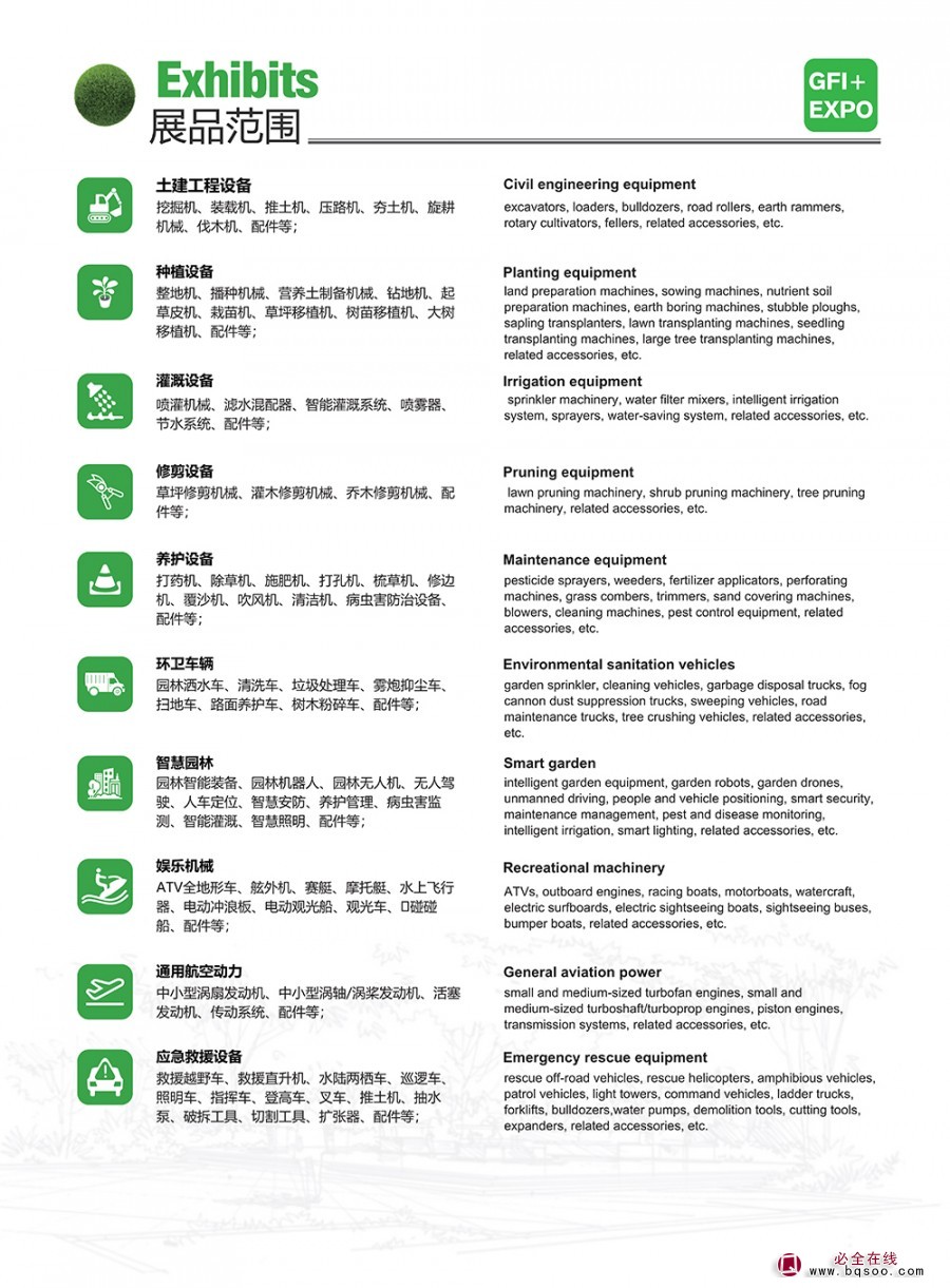 历经五年沉淀,已崛起成为亚洲该行业发展的引领者之一,是集科技创新、新品发布、贸易合作与学术交流于一体的重要国际平台。其展品涵盖土建工程设备、种植设备、灌溉设备、修剪设备、养护设备、环卫车辆、通用航空动力、智慧园林、新能源动力、OEM专区、娱乐机械、应急救援设备十余大领域,完整覆盖从核心零部件到整机装备的全产业链生态,全方位展示行业风貌与技术实力。同期举办50余场系列权威会议及论坛,邀请行业精英、相关领域专家学者,解读最新政策法规,展示前沿科技产品并促进采购洽谈,展会集行业交流、交往、交融,形成了新品发布、洽谈采购、行业交流、开放合作四大平台。