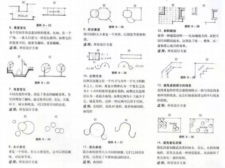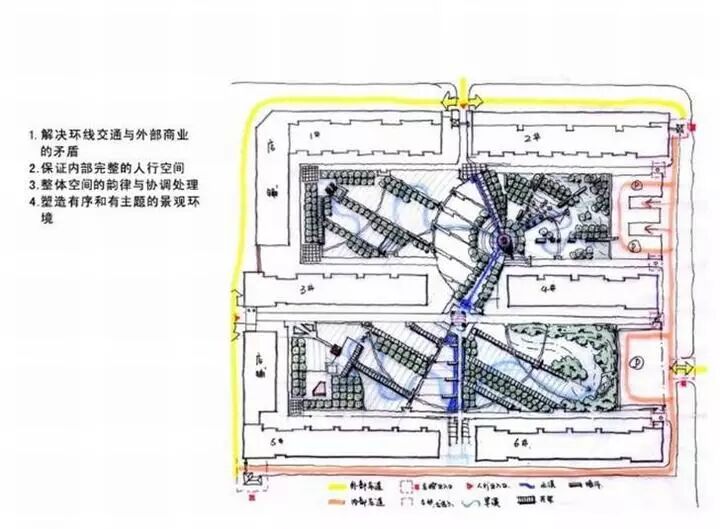 调查结束后就进入下一步——概念设计,概念的设计思想通常是调查与分析的逻辑结果。但美的构图形式却不能从逻辑分析中直接产生,逻辑分析是抽象思维,平面构图的形式属于形象思维,二者要并行。