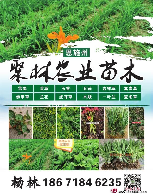 恩施州聚林农业开发有限公司供应鸢尾、萱草、肾厥、石蒜、韭兰、佛甲草、垂盆草、铃兰、香蒲草、美女樱、福禄寿、玉簪、吉祥草、富贵草、蛇莓、兰花、地瓜果、虎耳草、菖蒲、木贼、水葱、鱼腥草、车前草、兰花三七、阔叶麦冬草、中叶麦冬、细叶麦冬、矮麦冬、一叶兰、水芹、紫金牛、络石、爬山虎、青苔、各种黄杨树桩、黄杨苗、树状月季桩、猕猴桃苗等,基地直销~欢迎来电咨询订购