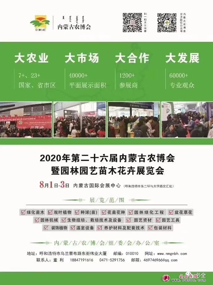 8月1日-3日,下半年第一场苗木会——2020年第二十六届内蒙古农博会暨园林园艺苗木花卉展览会在内蒙古国际会展中心举行