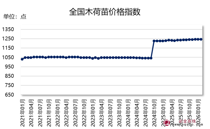 木荷作为南方重要的防火林、生态林和用材林树种,近年来市场需求稳定。2026年2月全国木荷苗价格指数为1244.70点,环比上涨0.05%。