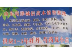 山东菏泽诚信苗木销售基地主要品种:国槐、白蜡、法桐、北栾、竹球、五价枫、垂柳、千头椿、大叶女贞等各种乔木;紫叶李、西府海棠、北美海荣、百日红、牡丹、石榴、碧桃、木槿、樱化、紫荆等花灌木。供应1-3年牡丹、芍药及小苗,