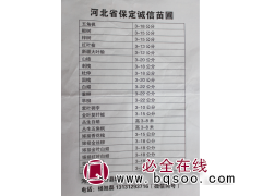 河北省保定诚信苗圃供应五角枫3-18公分、楸树3-15公分、梓树3-15公分、红叶榆3-13公分、新疆大叶榆3-12公分、山楂3-20公分、刺槐3-18公分、杜仲3-18公分、国槐3-20公分、白蜡3-22公分、垂柳3-22公分、旱柳3-22公分、紫叶稠李3-10公分、金叶复叶槭3-15公分、丛生白蜡高3-8米、丛生五角枫高3-8米、嫁接香花槐3-15公分、嫁接金丝柳3-18公分、嫁接金叶白蜡3-18公分、嫁接红叶白蜡3-18公分、嫁接金叶榆3-18公分、嫁接金叶槐3-18公分;