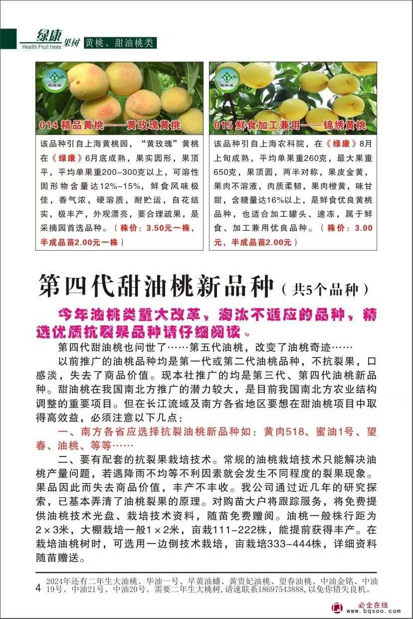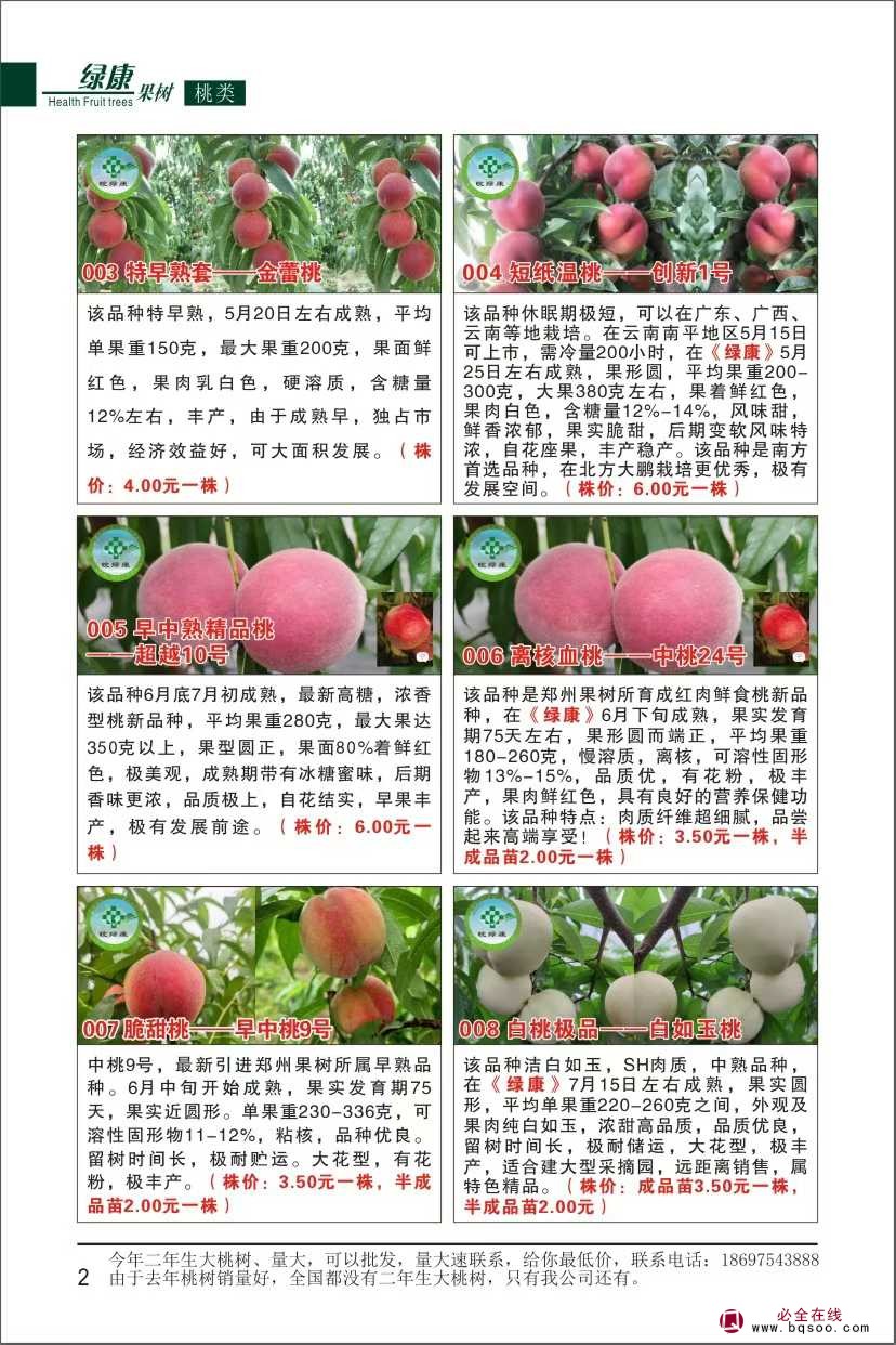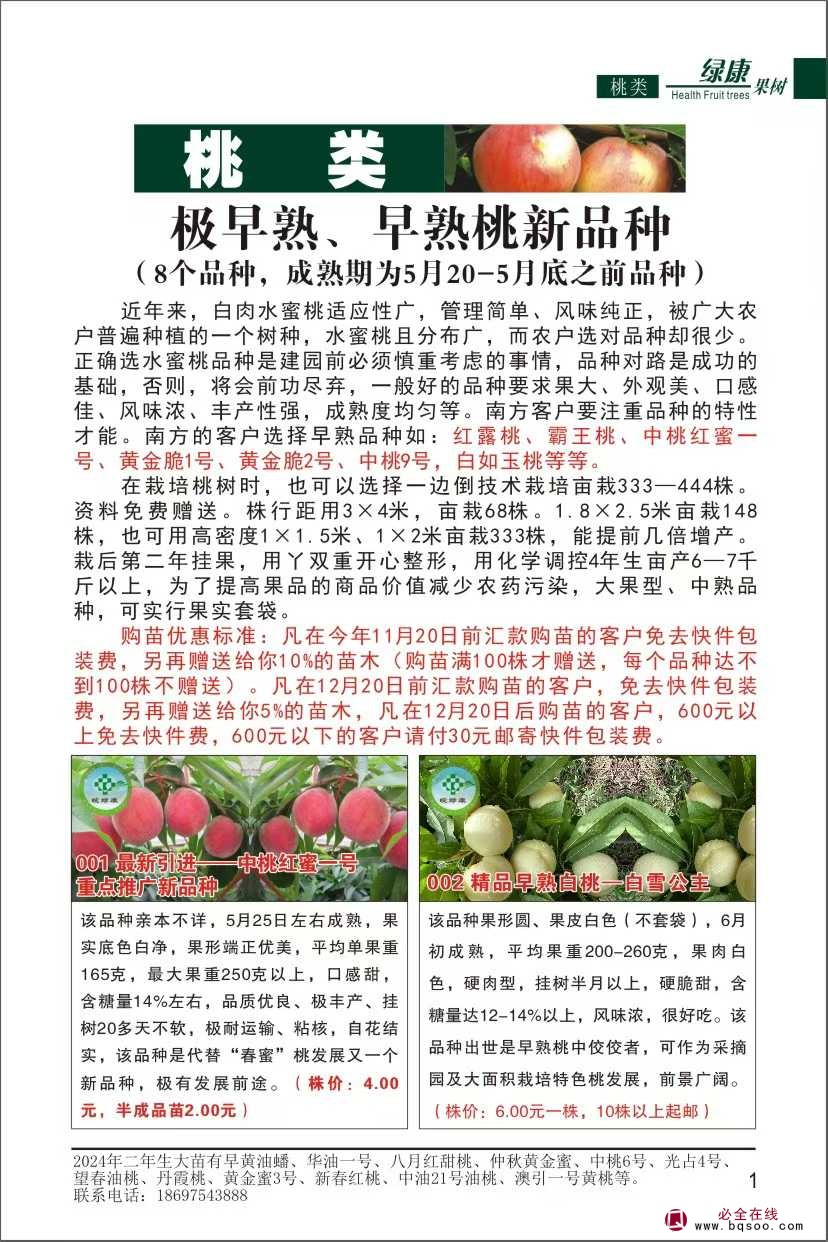 本公司从售后起每年的再次推出 最新品种的同时,依然慎重地从栽培者的效益出发,对每一个品种反复斟酌,力求它们在具备优良改善的同时,更有可靠的适应性,以确保栽培效益更加突出。出圃的优质果苗,在贯彻“细节决定成败“的管理理念,抓住微观世界每处细小环节,使得种植苗纯度和质量更加可靠。这些果树新品种的推出,希望能为您开发高档无公害精品果园、生态旅游观光果园、果树新品种实验推广园等高效果业项目提供可靠的种苗支持!