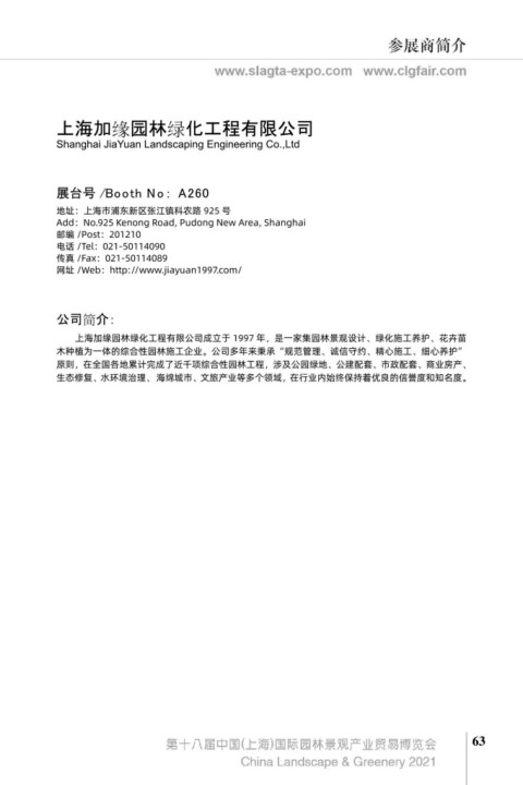 上海奉贤园林绿化工程有限公司公司成立于 1992 年 7 月,注册资金 2000 万元,是一家以城市园 上海加缘园林绿化工程有限公司成立于 1997 年,是一家集园林景观设计、绿化施工养护、花卉苗