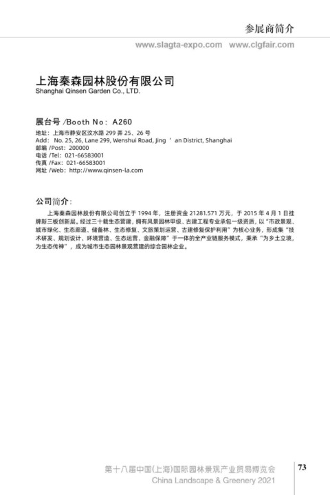 上海美地园林有限公司成立于 2012 年,注册资金 2000 万。本公司具有建设部核发的城市园林绿 上海秦森园林股份有限公司创立于 1994 年,注册资金 21281.571 万元,于 2015 年 4 月 1 日挂