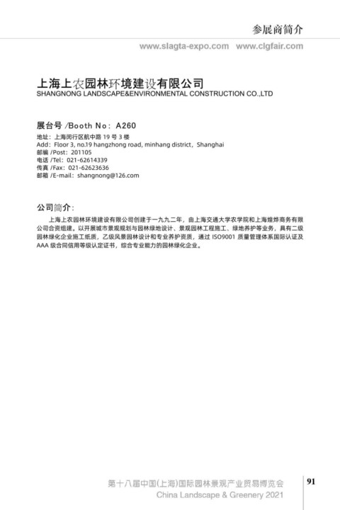 上海陆家嘴市政绿化管理服务有限公司成立于 2005 年,注册资本金 3500 万元。通过十多年来集 上海上农园林环境建设有限公司创建于一九九二年,由上海交通大学农学院和上海煌烨商务有限