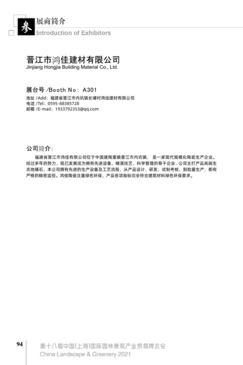 地址 /Add:福建省晋江市内坑镇长埔村鸿佳建材有限公司 地址 /Add:浙江省温州市永嘉县桥下镇韩埠龙头山路 1 号