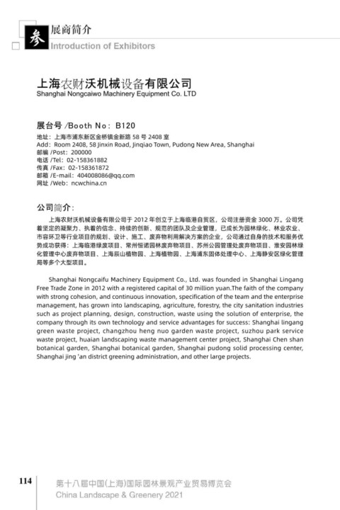 Shanghai Nongcaiwo Machinery Equipment Co. LTD