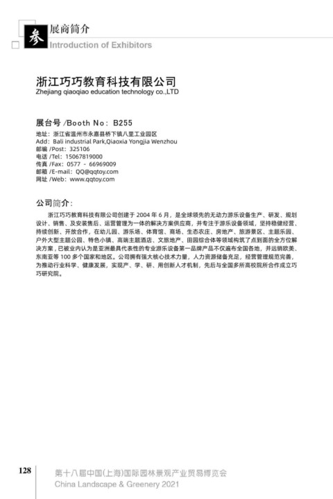 浙江巧巧教育科技有限公司创建于 2004 年 6 月,是全球领先的无动力游乐设备生产、研发、规划 江苏美沥特道路面材料有限公司是一家专业从事研发、生产、销售各种彩色防滑路面材料的综合性