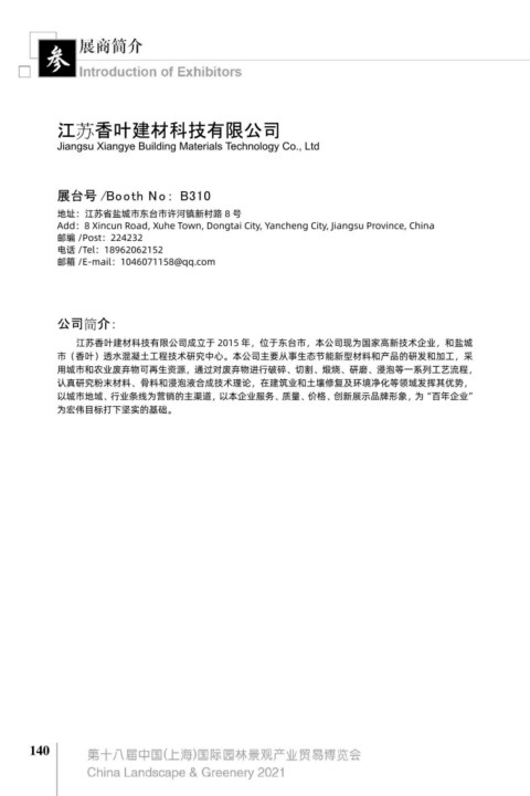 市(香叶)透水混凝土工程技术研究中心。本公司主要从事生态节能新型材料和产品的研发和加工,采 控根、滴灌等农业用品生产企业,具有独立的进出口权。企业各生产线工艺技术,检测设备齐全,生产