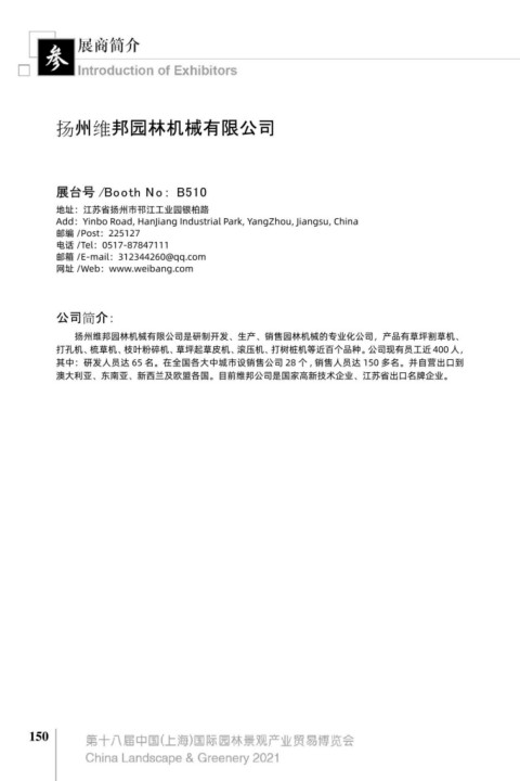Add:Yinbo Road, HanJiang Industrial Park, YangZhou, Jiangsu, China 邮编 /Post:325106