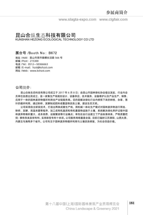 《绿色东方》作为上海市园林绿化行业协会会刊。是一份面向企业、面向市场的行业性杂志。其旨 昆山合纵生态科技有限公司成立于 2017 年 6 月 8 日;由昆山市园林绿化协会倡议发起,行业内会