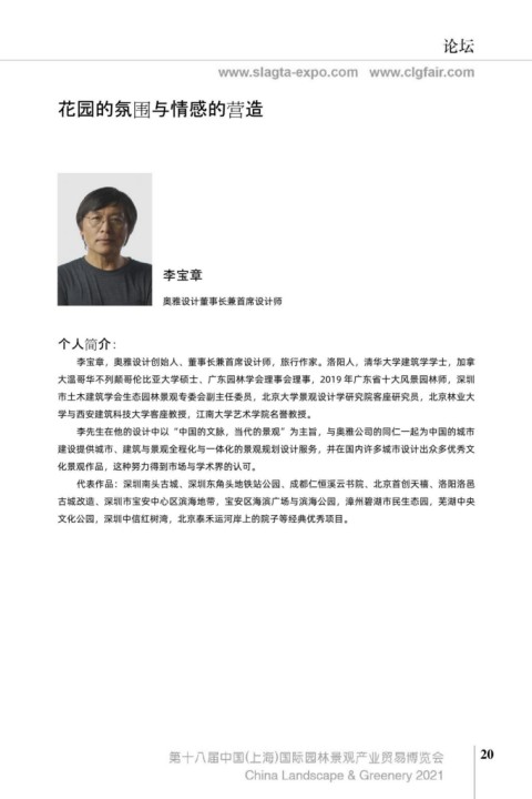 李宝章,奥雅设计创始人、董事长兼首席设计师,旅行作家。洛阳人,清华大学建筑学学士,加拿