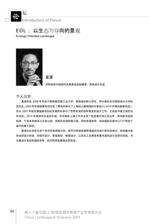 夏源先生 2008 年毕业于德国慕尼黑工业大学,景观规划硕士学位,师从著名生态景观设计大师拉 Nature-Based Solutions (NBS) for City Resilience will explore ways to enhance the