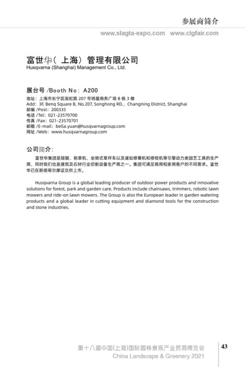邮箱 /E-mail:bella.yuan@husqvarnagroup.com